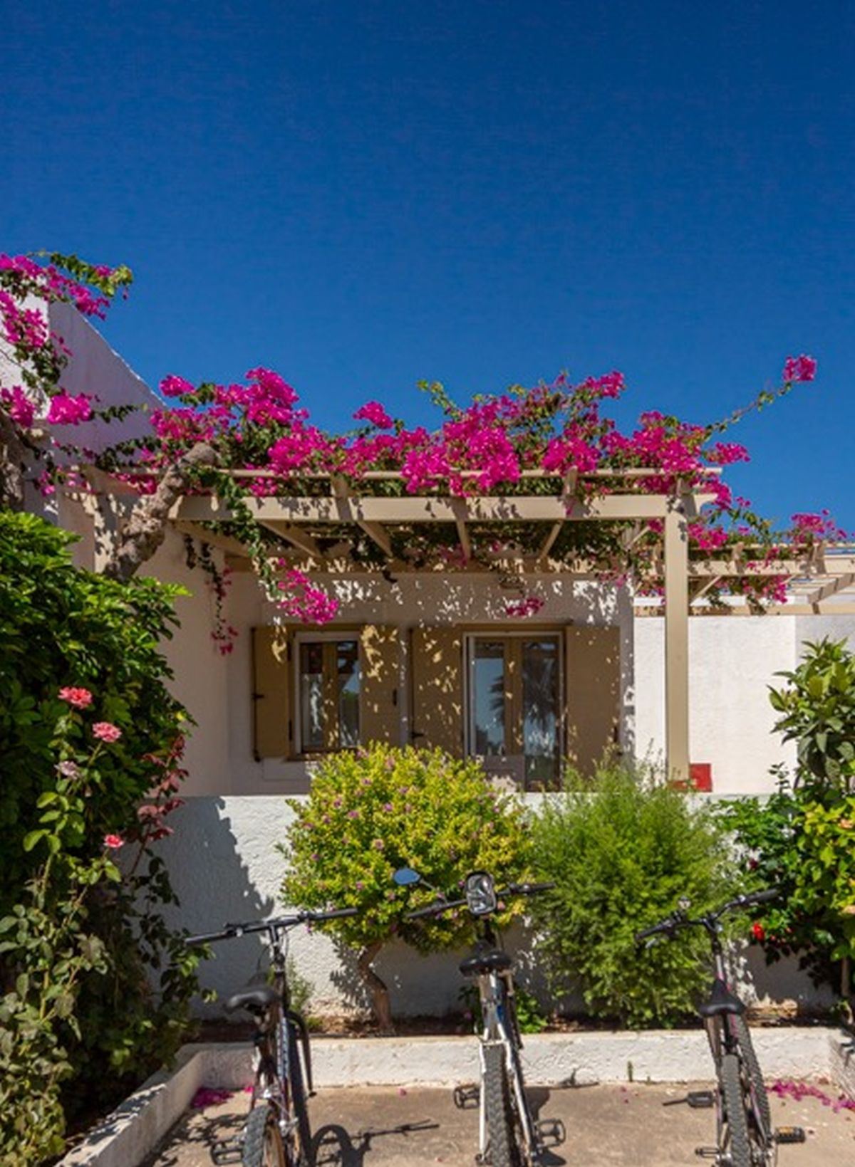 Das freundliche, familiengeführte Hotel ist im Bungalowstil errichtet und liegt sehr ruhig gelegen inmitten eines Olivenhaines unweit der Bucht. Das Hotel verfügt über 28 Zimmer (auch Familienzimmer), welche über fünf separate Gebäude verteilt sind. Es gibt einen schönen Pool und einem gemütlichen, schattigen Innenhof, in dem das Frühstück serviert wird. Ein kostenloser Tennisplatz rundet den positiven Gesamteindruck der Anlage ab