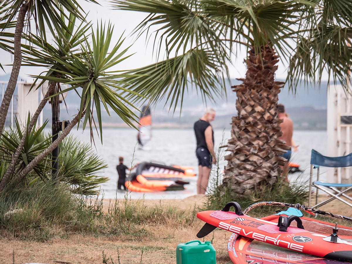 Das Revier ist ideal für alle, die in sicherem Umfeld lernen, an ihren Manövern arbeiten oder einfach viele entspannte Stunden auf dem Wasser verbringen möchten. Statt unruhiger Welle oder schwieriger Startbedingungen steht hier genau das im Mittelpunkt, was einen guten Wingfoil-Spot ausmacht: flaches Wasser, viel Platz und ein Umfeld, in dem schnelle Fortschritte möglich sind. Dazu kommt das typische sardische Lebensgefühl mit mediterranem Klima, schöner Natur und kleinen charmanten Orten in der Umgebung.